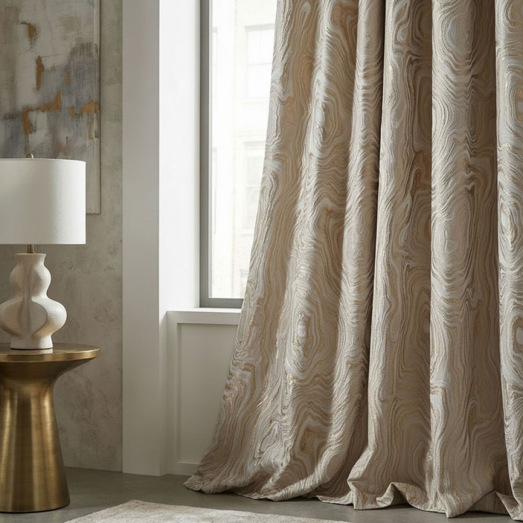Gilded Marble Luxury 3D Jacquard Mocha Cream Abstract Curtain