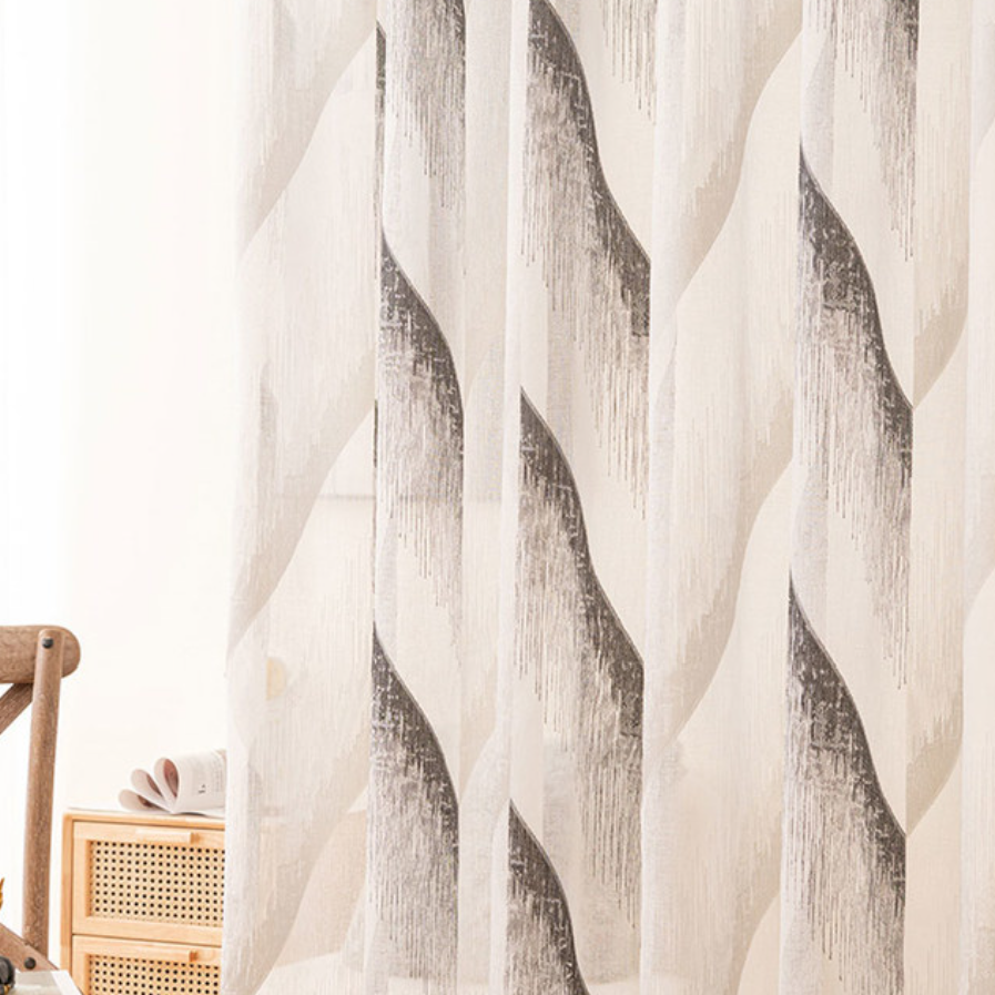 New Wave Jacquard Charcoal Gray Modern Geometric Sheer Curtain
