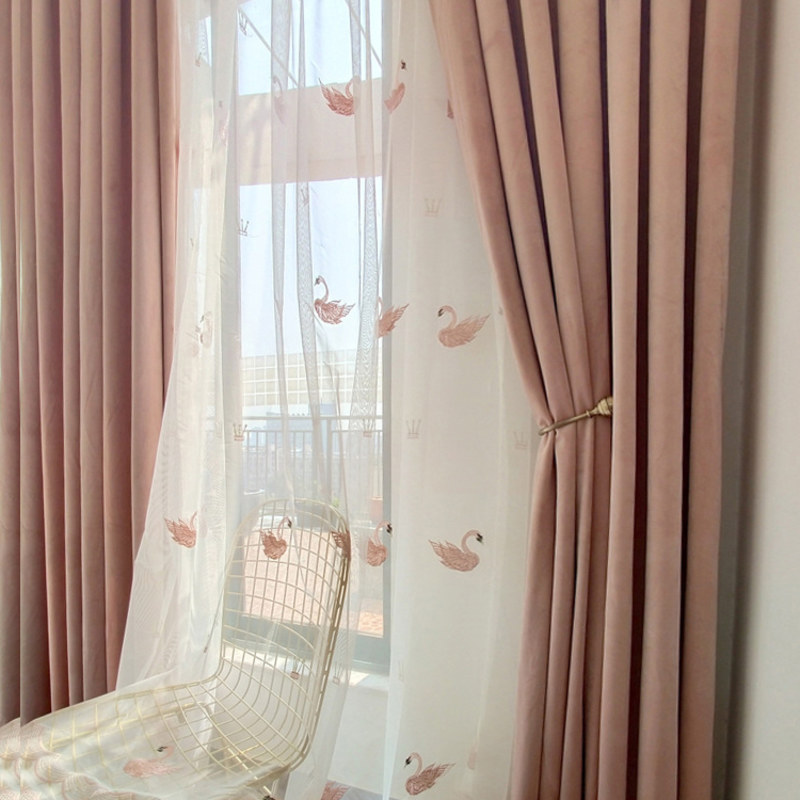 These tulle curtains feature delicately embroidered swans, allowing natural light to filter through while adding a graceful touch to any room