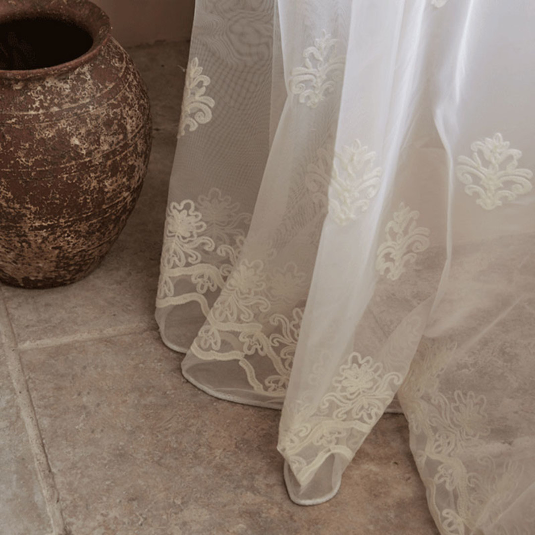 Neoclassical Design Damask White Embroidered Sheer Sheer Curtain 20% OFF