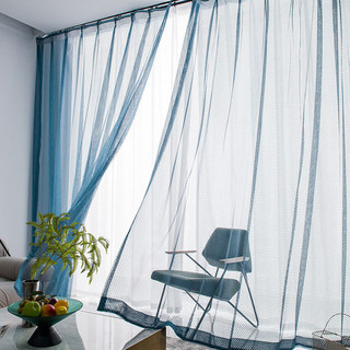 Enmeshed Diamond Grid Pacific Blue Net Curtain