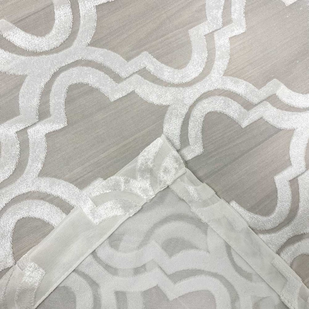 Fancy Trellis Cut Velvet Ivory White Arabesque Sheer Curtain