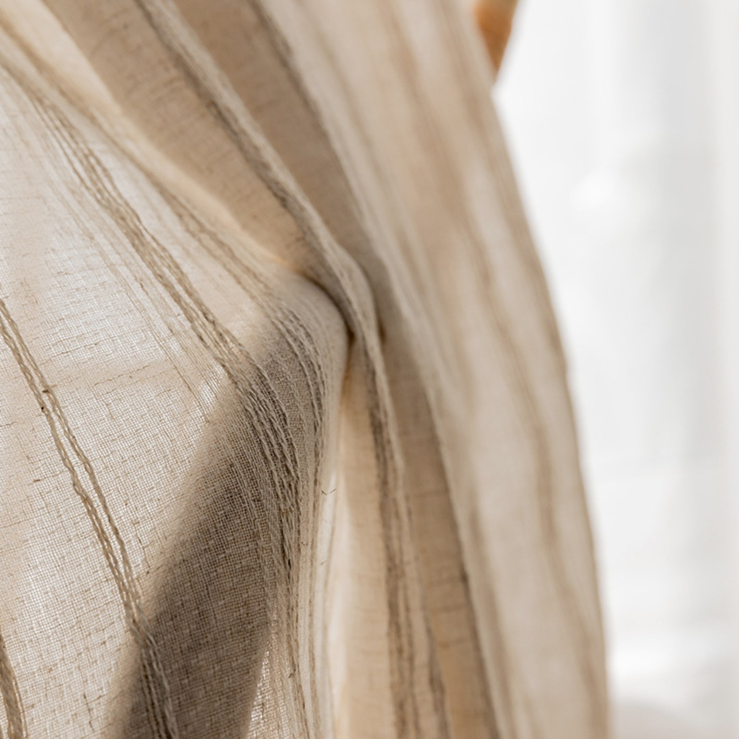 Add soft light to your room while creating privacy with these stylish striped linen style sheer curtains. The room adopts a simple and understated color palette, where the sheers are subtly modernized with clean lines, adding a touch of contemporary elegance.