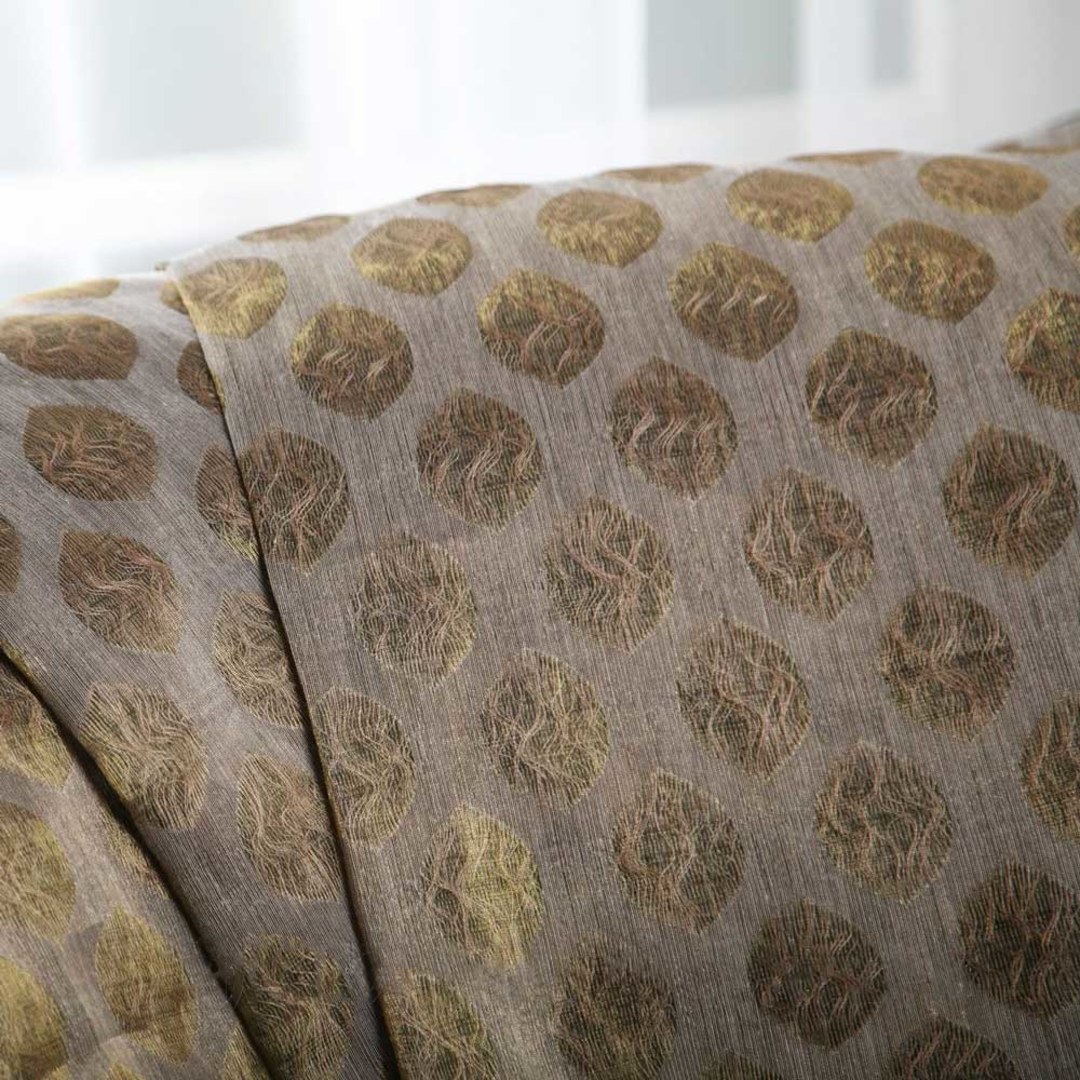 Intricately woven in a refined jacquard, this voile curtain features a graceful geometric leaf motif that captures light with subtle sophistication.