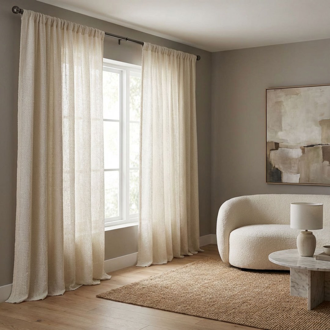 French Chic Beige Cream Heavy Sheer Curtain 5% OFF