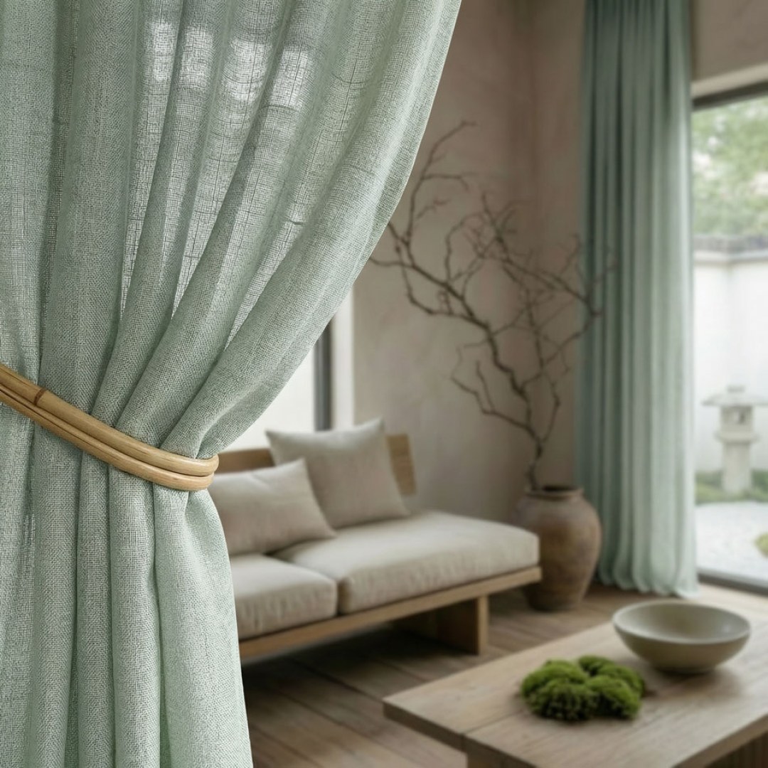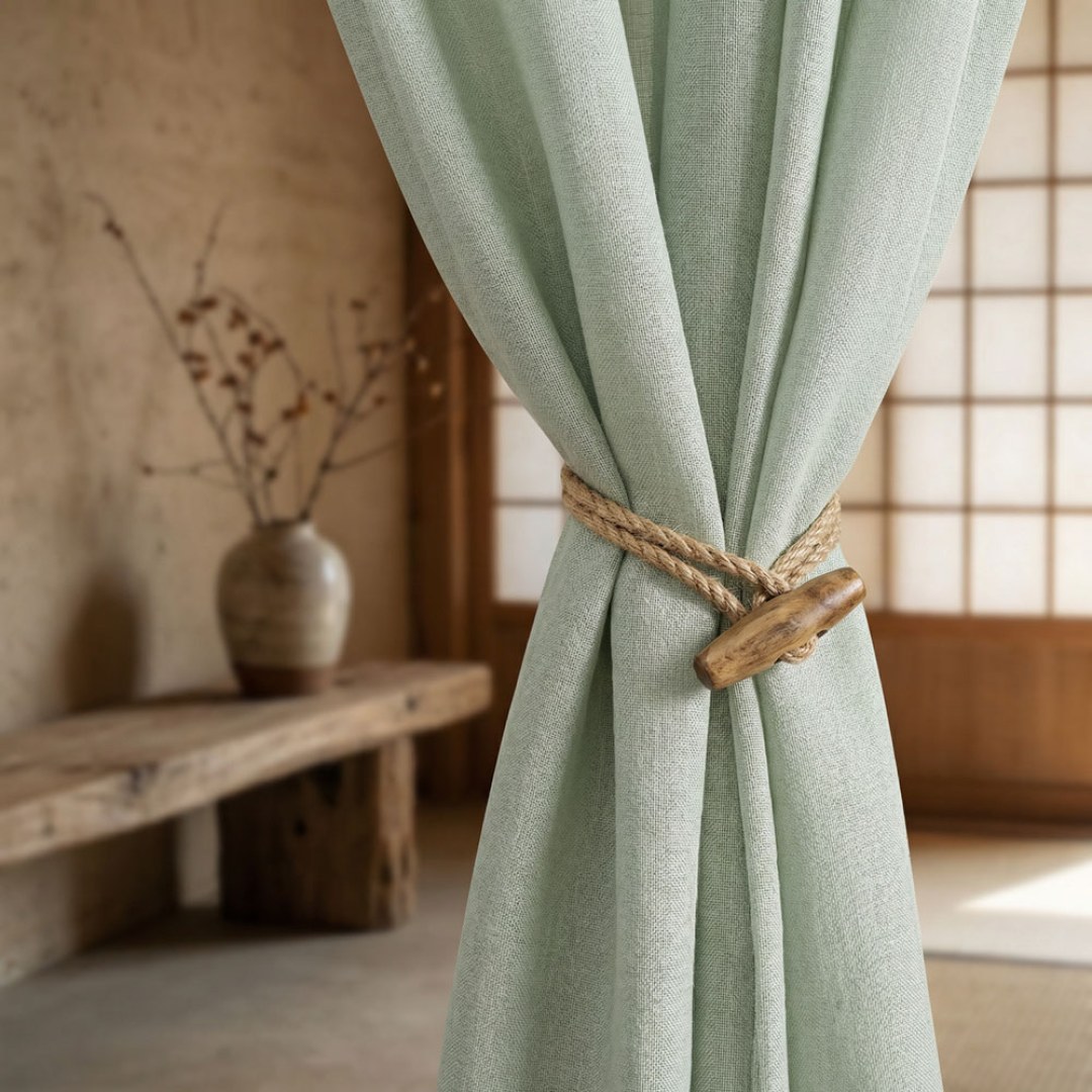 Wabi Sabi Pure Flax Linen Light Green Sheer Curtain