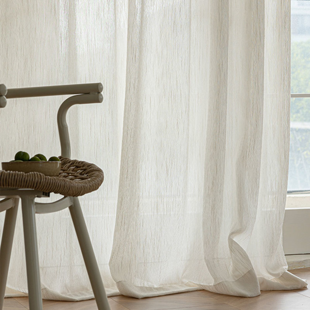 Fleecy Cloud Cream Off White Textured Striped Voile Curtain