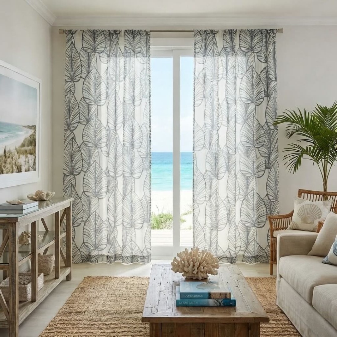 The 'Lush Palm Tree Paradise' collection custom semi sheer curtains are created to your exact requirements and are available in a choice of heading styles.