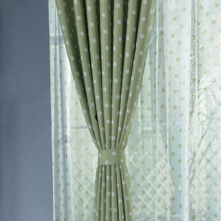 The blackout green polka dot curtain has a special coating that blocks light from shining through (without lining).