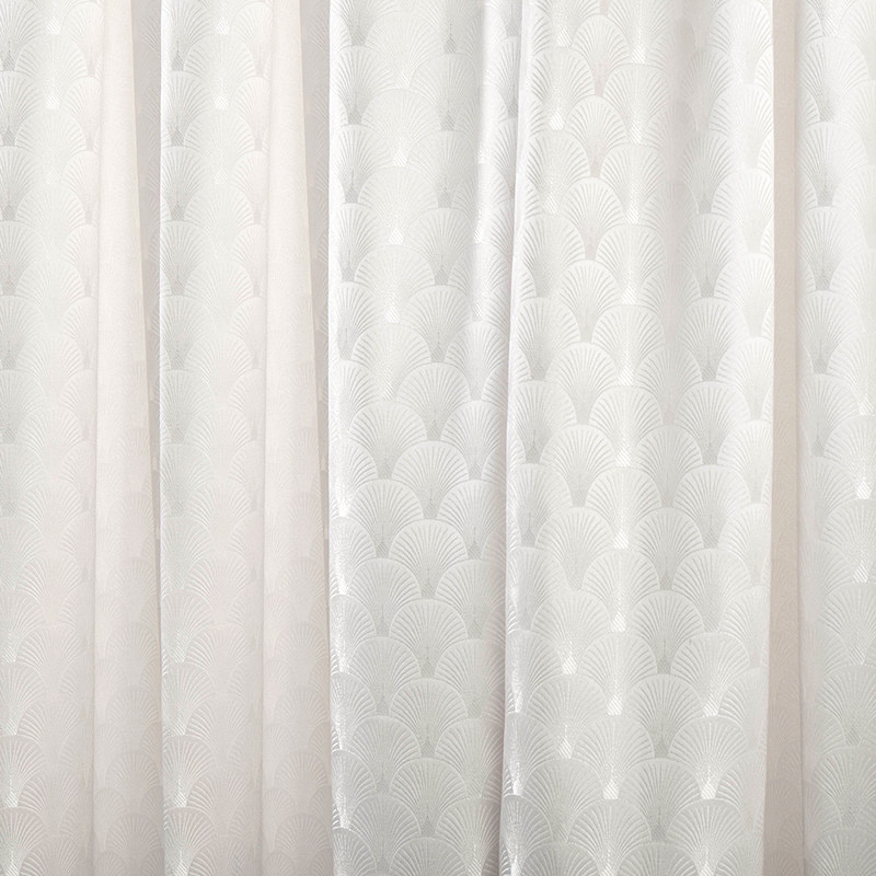 These classic Art Deco shell patterned ivory white curtains will complement any room of your choice and serve as a bold feature of decor.