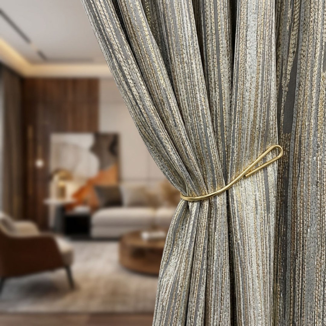 Gilded Stripes Subtle Textured Gray and Gold Striped Curtain