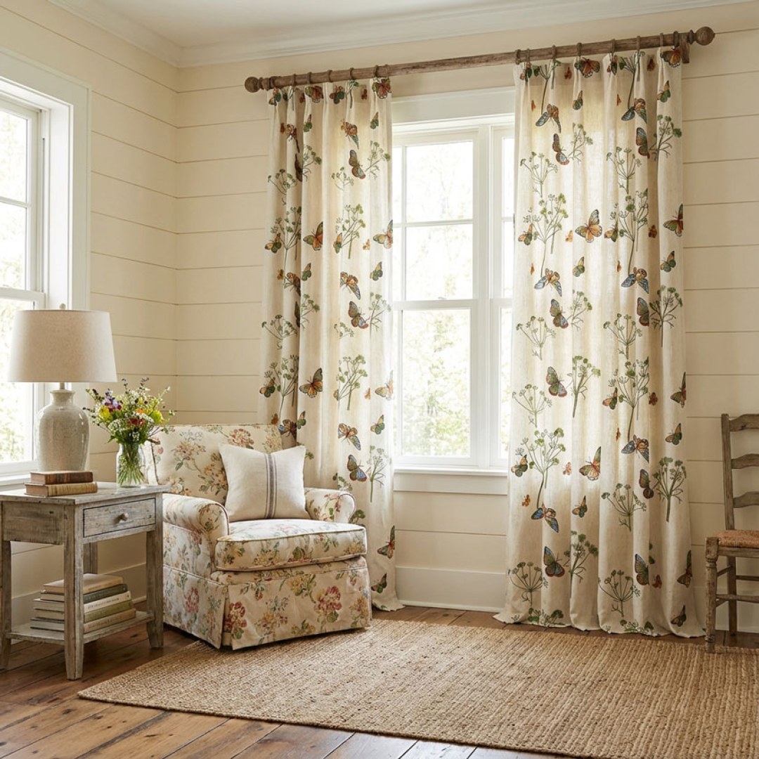 The neutral cream tone creates a serene, inviting atmosphere, perfectly suited for traditional, country, farmhouse, or shabby chic interiors.