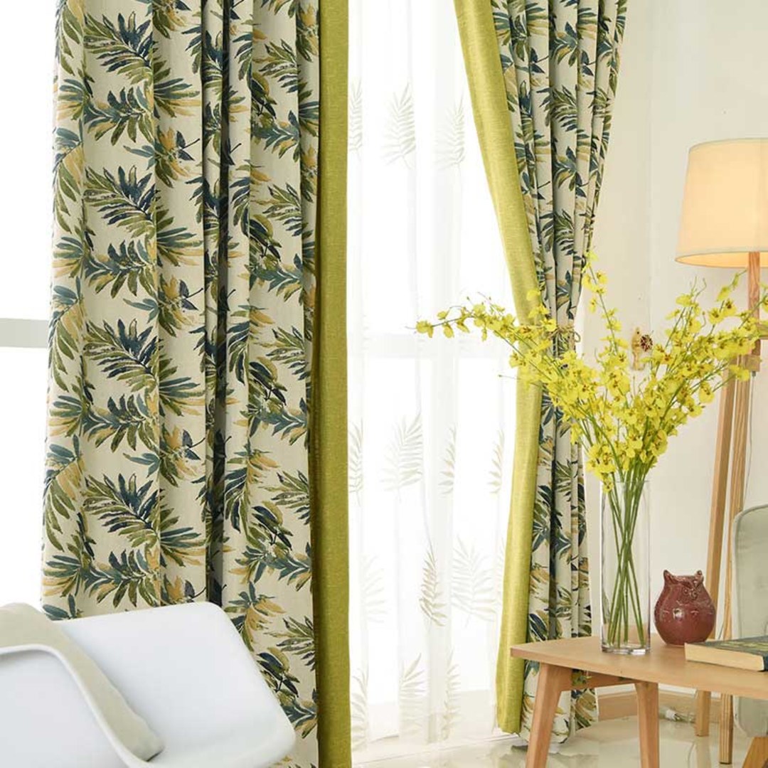 Leafy Whispers Linen Style Blue Green Palm Leaf Tropical Blackout Curtain