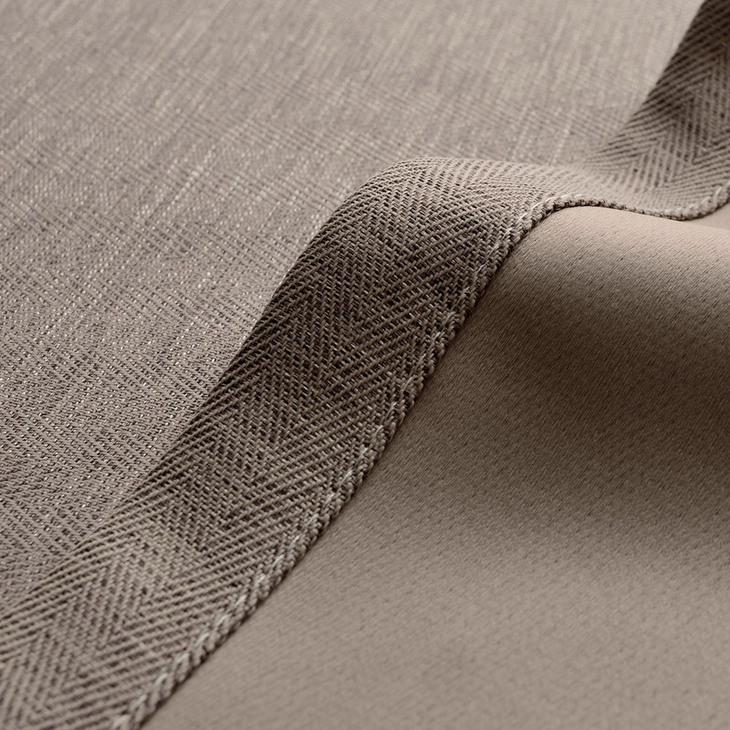 This soft touch fabric is a blackout material and lends itself from 85% to 95% blackout effect without using a second lining. The darker colour you choose the better the blackout effect you can get.