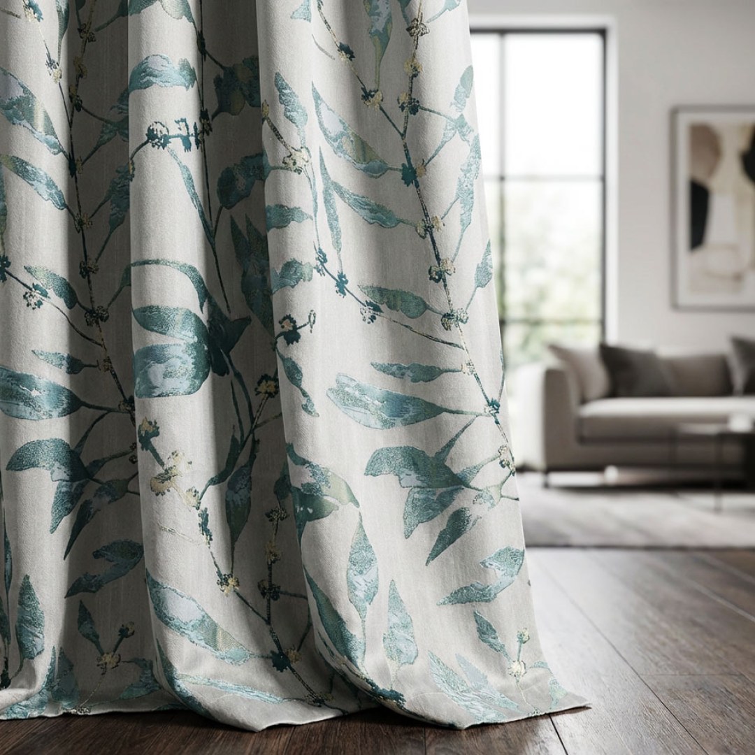 Inspired by nature, these curtains feature graceful leafy motifs highlighted with shimmering gold accents. The refined design blends contemporary elegance with organic charm, making them a versatile choice for adding depth, texture, and a touch of sophistication to any interior.