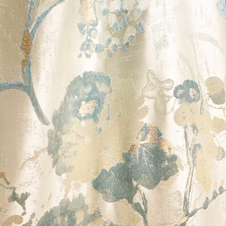 Secret Garden Silky Cream & Pastel Teal Floral Curtain with Gold Details