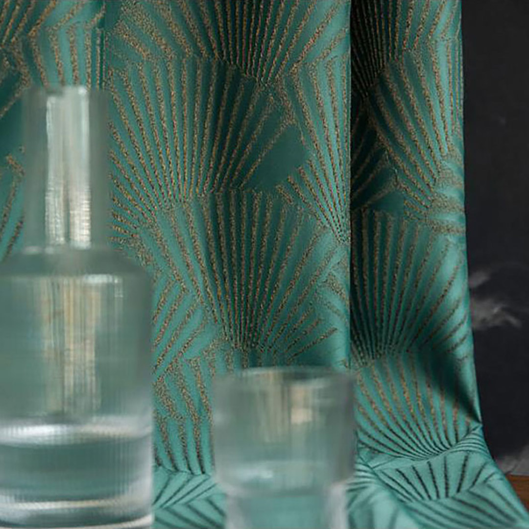 These luxurious jacquard curtains feature an elegant Oriental fan motif, with an intricately woven design that creates rich texture and dimensional depth.