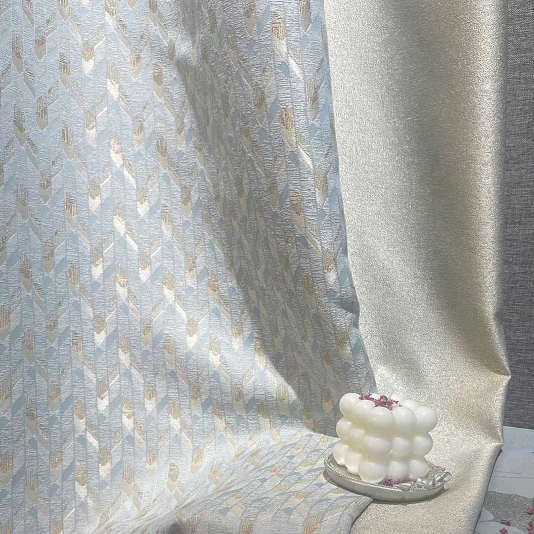 Alpine Luxury Jacquard Ice Blue Geometric Curtain with Gold Details