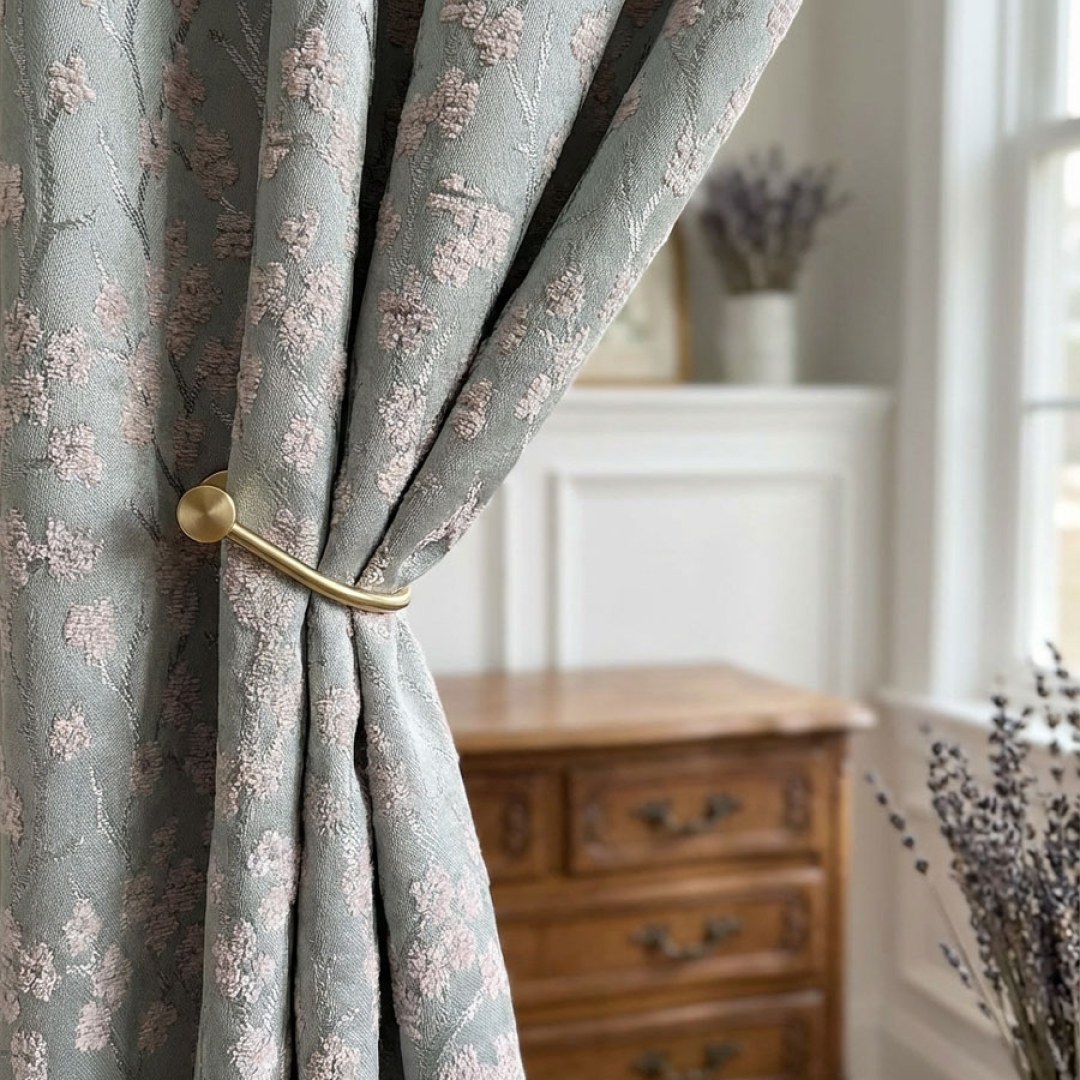 Crafted to perfection, the Cherry Blossom curtains radiate a refined elegance. Showcasing intricate cherry blossom motifs delicately adorned with branches, this curtain effortlessly elevates your decor with its subtle charm and luxurious sage light green hues.