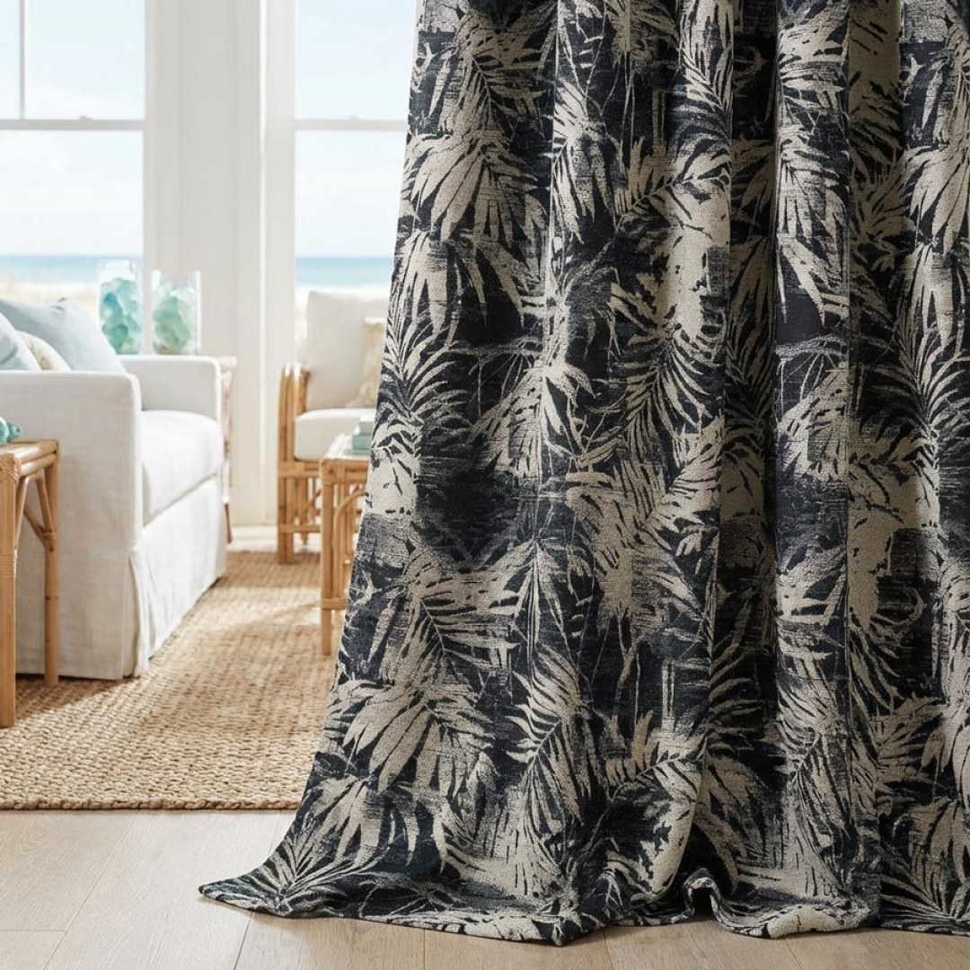 The Midnight Palms features a bold tropical palm motif woven in rich, inky blue tones, adding depth and an exotic elegance to any interior.