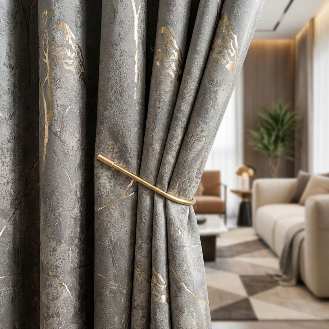 Lunar Gold Luxury Jacquard Abstract Grey Floral Curtain