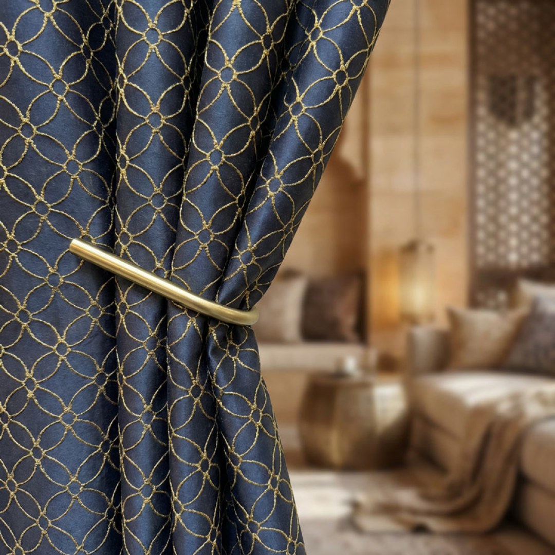 Subtle metallic threads in gold infuse a graceful shimmer, enhancing the design with a refined touch of luxury.