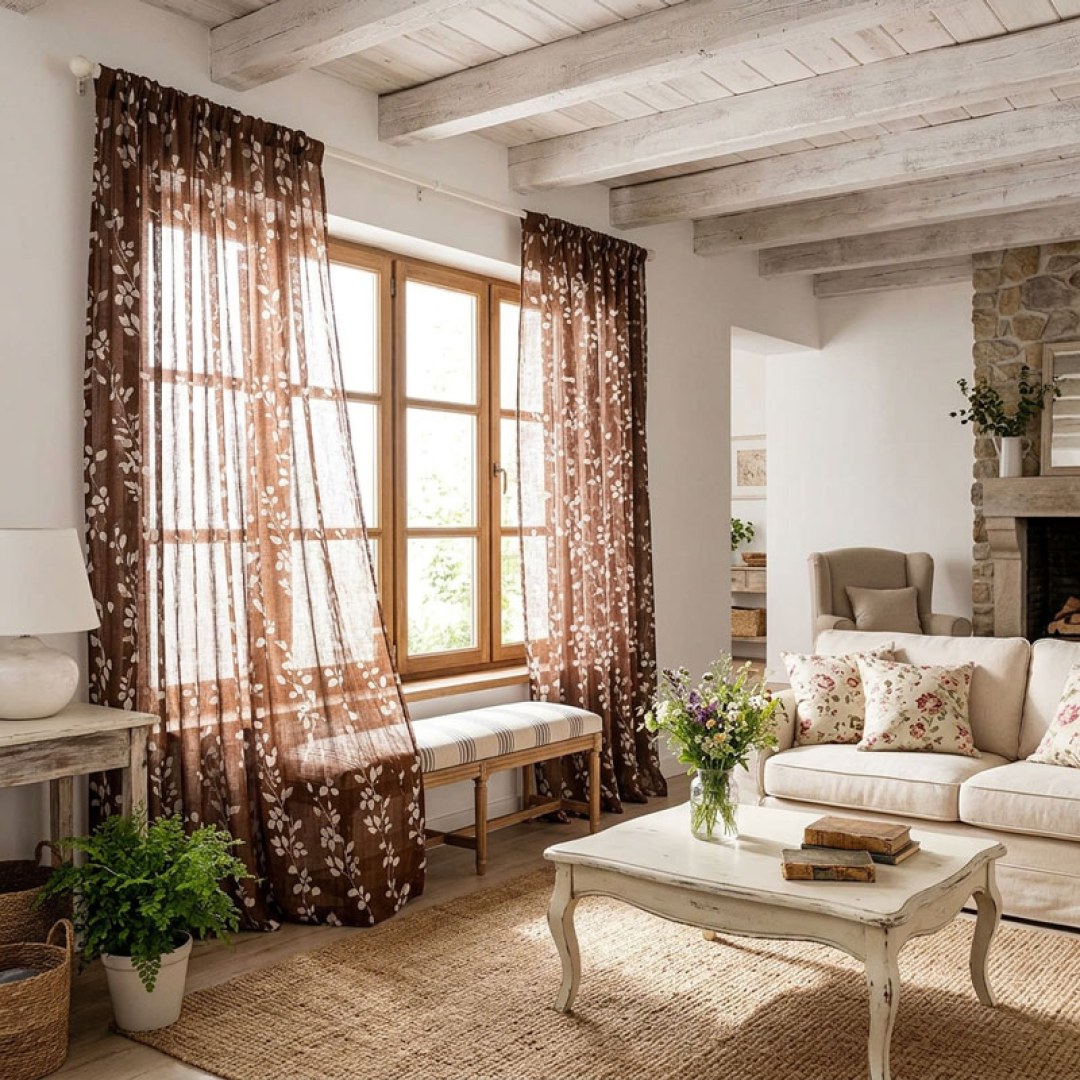 Pascal Brown Vine Print Semi Sheer Voile Curtain