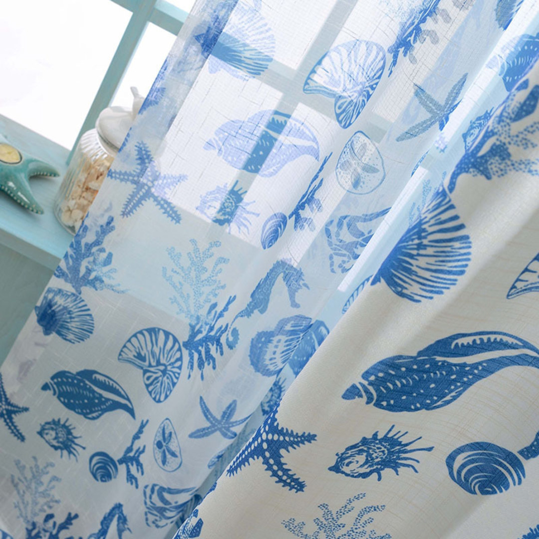 Seaside Spirit Blue Nautical Sheer Voile Curtains