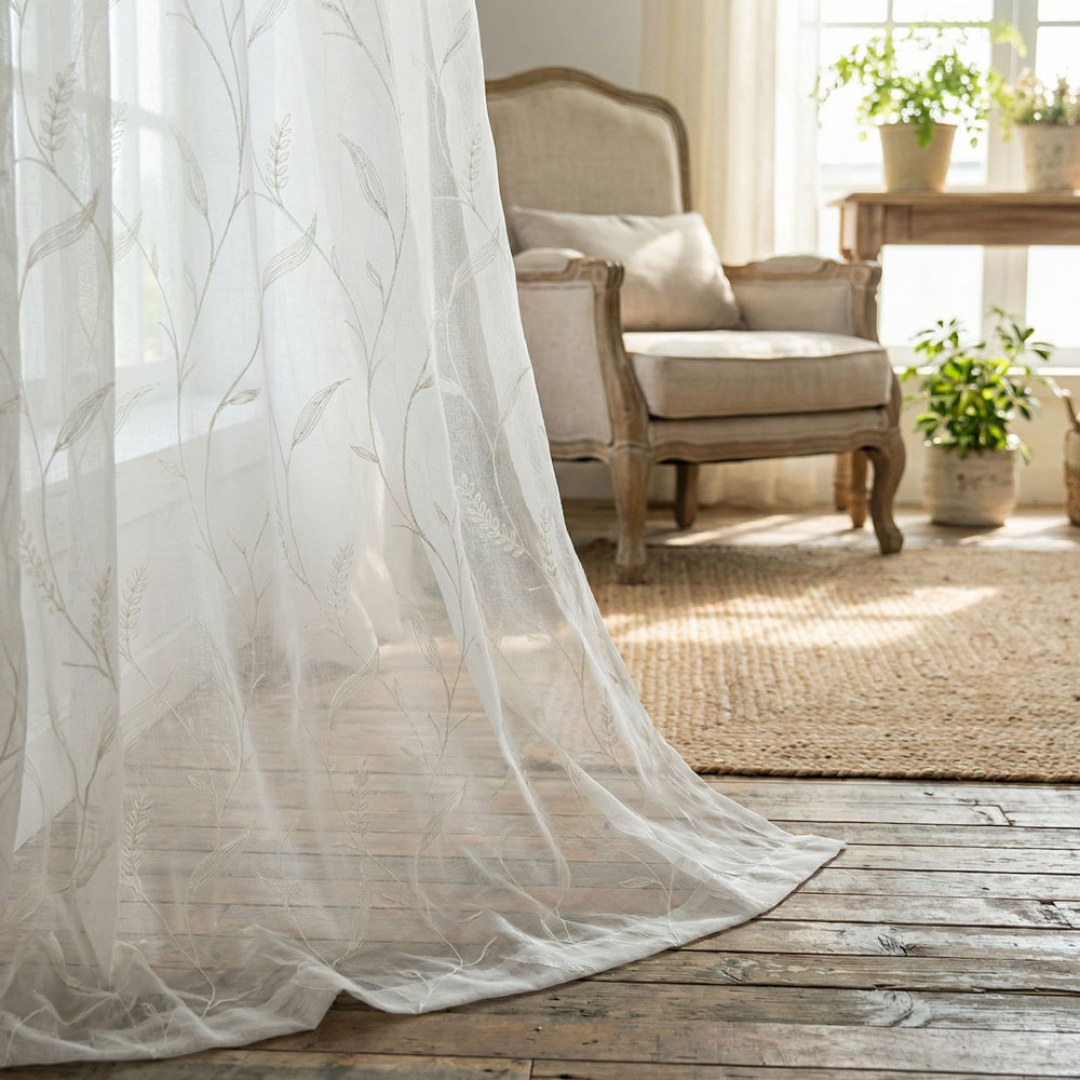 The ivory hue paired with the delicate embroidery provides your room with a dreamy look. These voile curtains allow in sunlight whilst adding a touch of elegance and nature in your home.