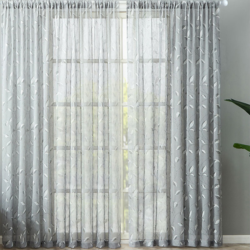 Misty Meadow Grey Branches Sheer Voile Curtain