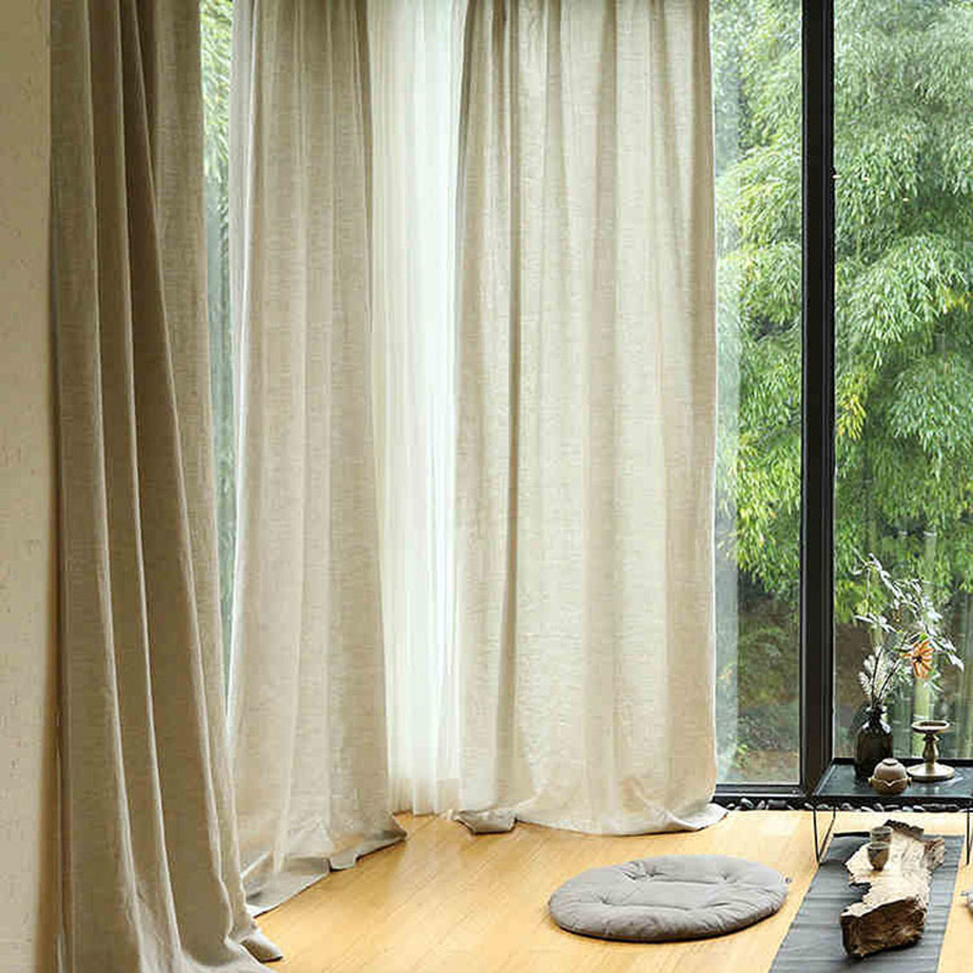 Provencal Style Pure Flax Linen Oatmeal Heavy Semi Sheer Curtain