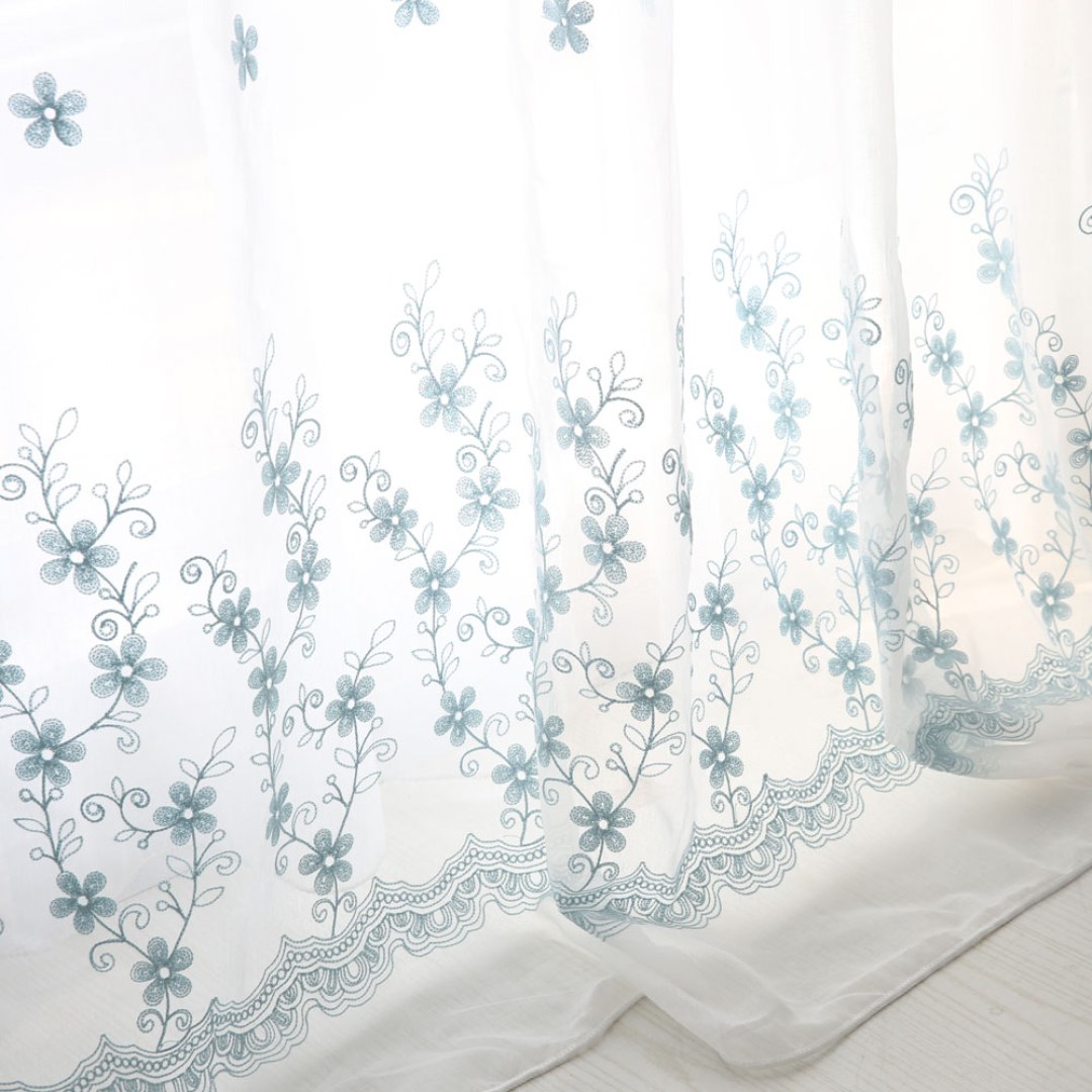 Softly embroidered with delicate floral motifs, these voile curtains add airy elegance and subtle texture. Their muted tones and refined design make them versatile for country, farmhouse, shabby chic, and romantic interiors.