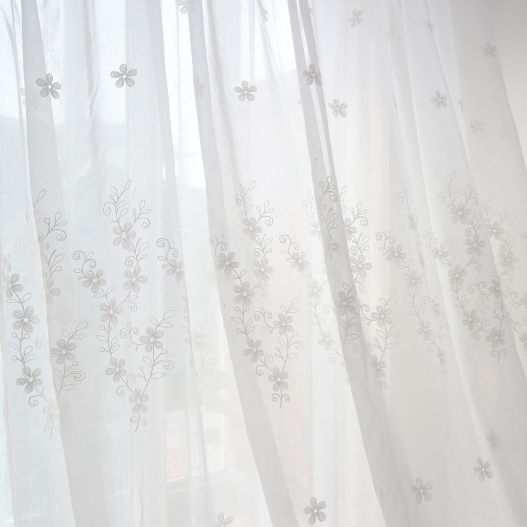 Softly embroidered with delicate floral motifs, these voile curtains add airy elegance and subtle texture. Their muted tones and refined design make them versatile for country, farmhouse, shabby chic, and romantic interiors.