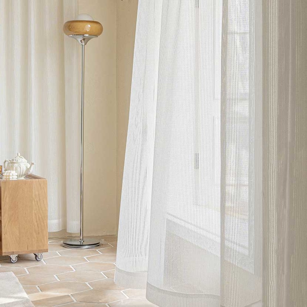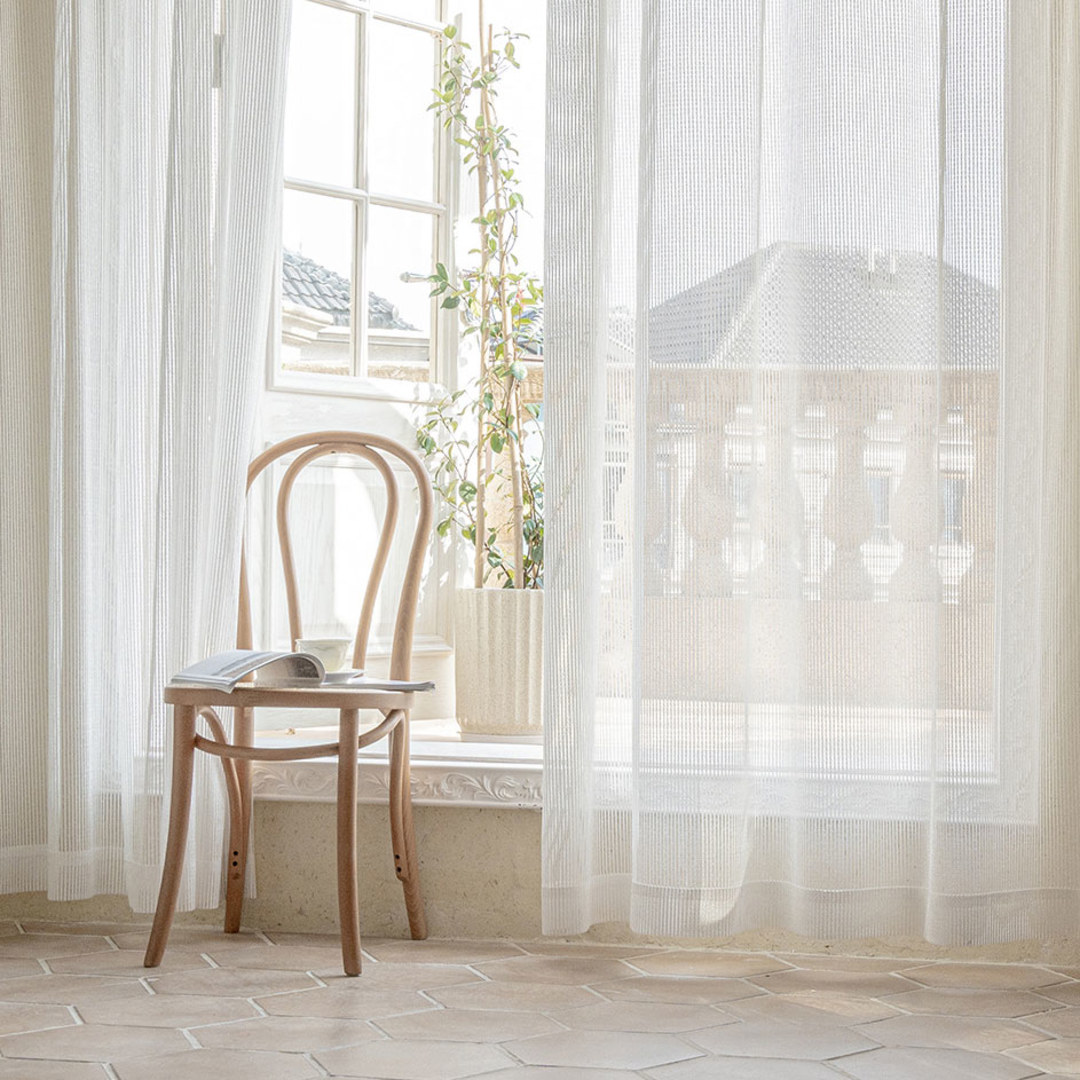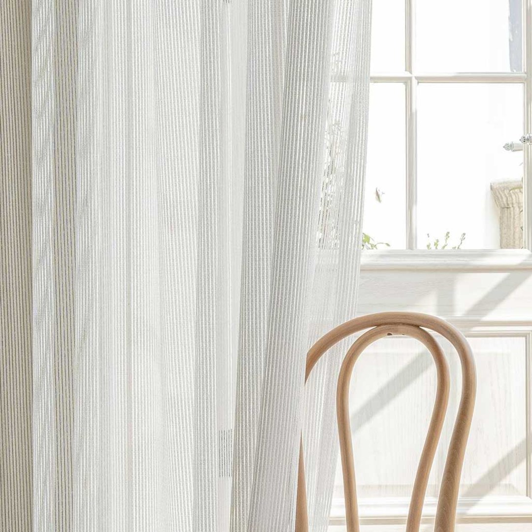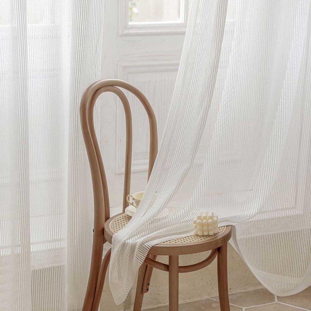 Ces rideaux voilages rayés uniques présentent des textures exquises et complexes qui créent un espace élégant et classique sans perdre l’esthétique minimaliste.