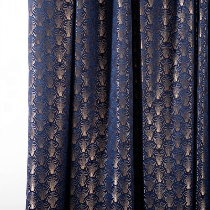 Ces rideaux classiques de style Art Déco à motifs coquillages bleu marine et or compléteront n'importe quelle pièce de votre choix et constitueront un élément de décoration audacieux.
