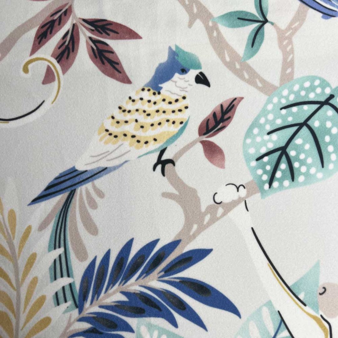Jungle Mingle Singe et Perroquet Pastel Vert Floral Rideau en Velours