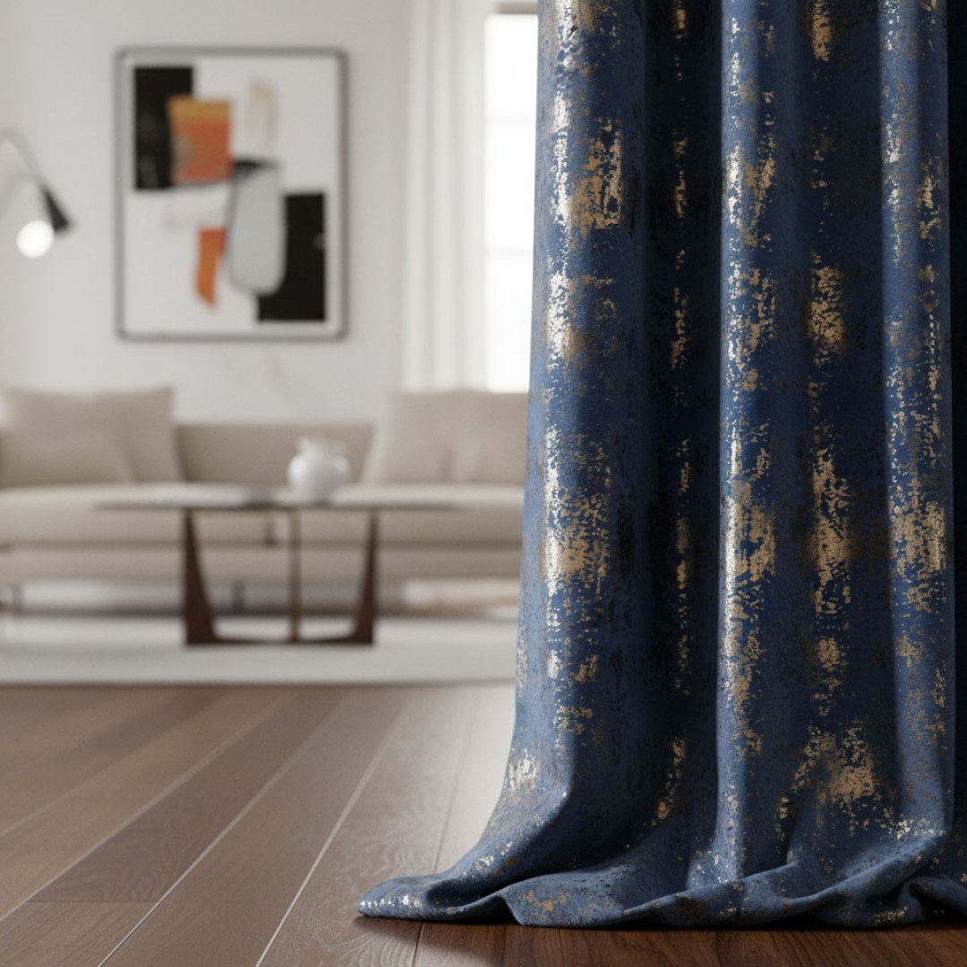 La vie est plus belle quand vous êtes couvert de paillettes. Brillez toute la journée avec ces superbes rideaux en velours royal bleu doré avec des paillettes dorées ! Nos rideaux en velours sur mesure sont méticuleusement confectionnés pour répondre à vos préférences spécifiques. Ils sont disponibles dans une variété de styles de tête pour s'adapter à vos goûts, notamment le galon plissé, l’œillet, le plissé pincé, le plissé façonné, le plissé boîte inversé, le passe-tringle à patte, le passe-tringle à boucle, la poche à tringle et le rideau à vague. Découvrez comment les rideaux en velours / chenille bleu peuvent moderniser n’importe quelle pièce.