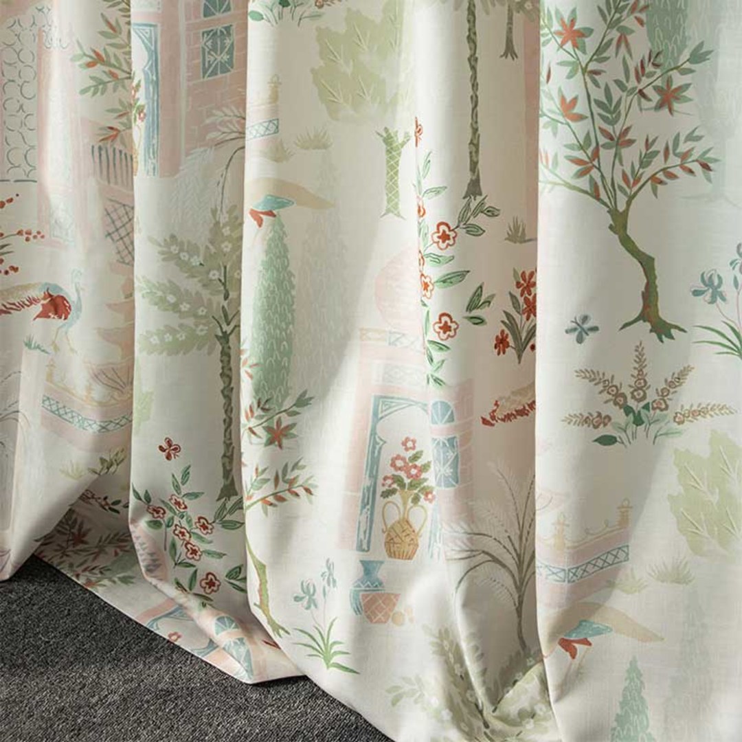 Inspiré des jardins persans exquis, ce motif peint à la main présente une architecture perse classique, des fontaines, des arbres exotiques, des fleurs et des paons sur un velours doux et soyeux. Nos rideaux en velours sur mesure sont méticuleusement confectionnés pour répondre à vos préférences spécifiques. Ils sont disponibles dans une variété de styles de tête, pour s'adapter à vos goûts, notamment le galon froncé, l’œillet, le plis chouchou, le plis tailleur, le plis boîte inversé, le passe-tringle à patte, le passe-tringle à boucle, la poche à tringle et le rideau à vague. Découvrez d’autres rideaux en velours floral exquis.