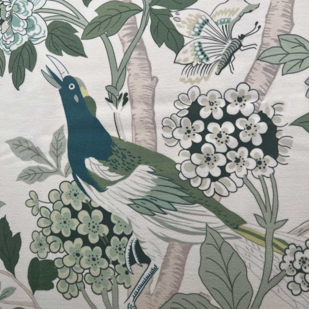 Birds & Blossoms Chinoiserie Olive Green Floral Velvet Curtain