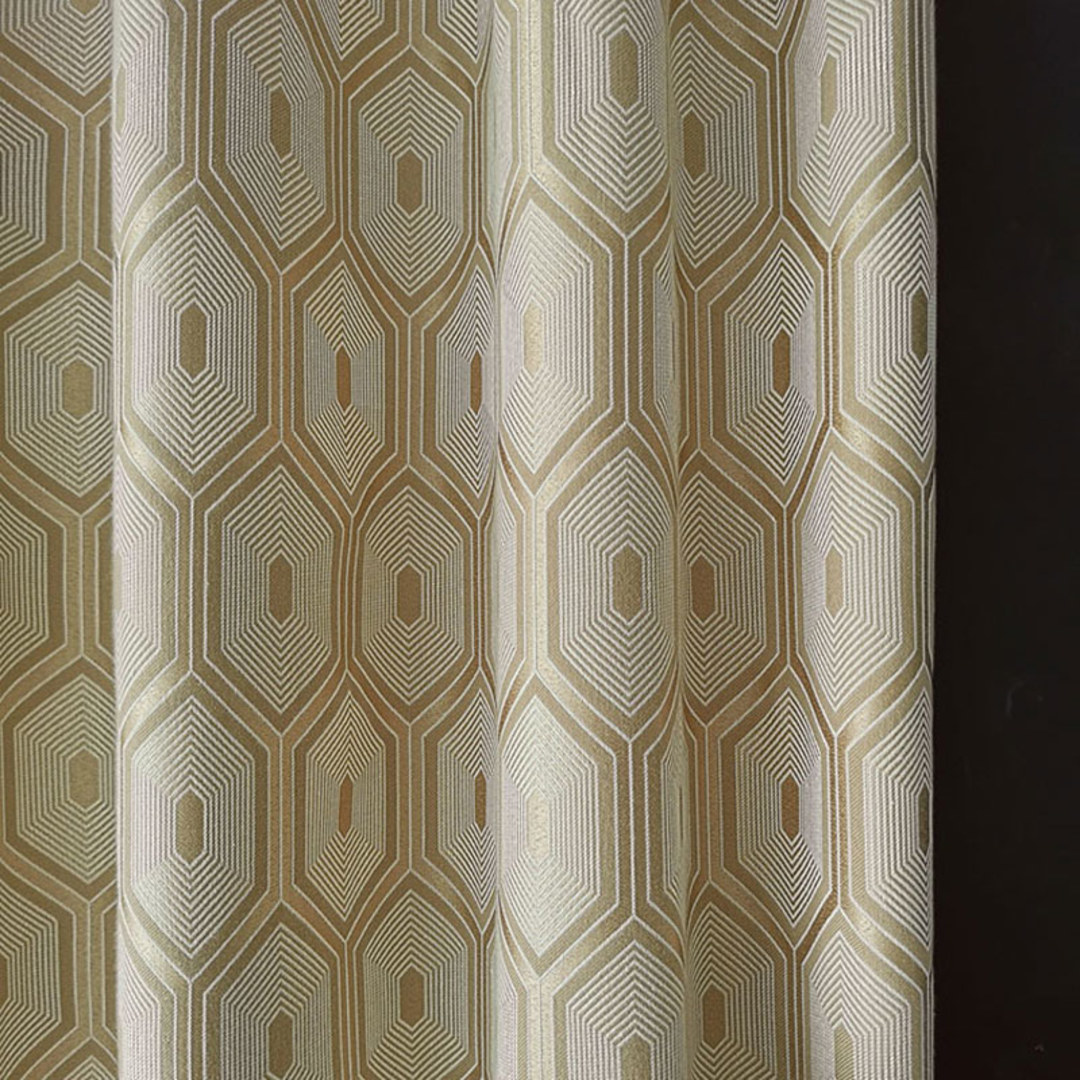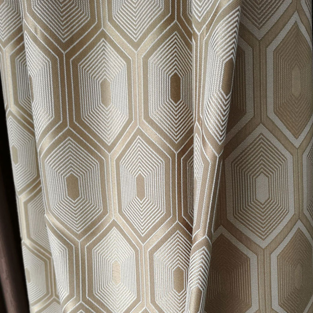 Obtenez un nouveau look sophistiqué avec ces luxueux rideaux jacquard hexagonaux géométriques crème et mocha. Ce design moderne complétera n'importe quelle pièce de votre choix et constituera un élément décoratif audacieux.