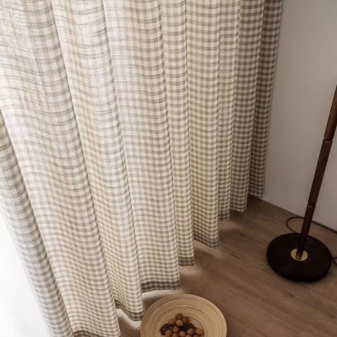 Farmhouse Charm Linen Style Mocha Brown Gingham Check Curtains Rideaux à carreaux gingam marron mocha style lin charme de ferme