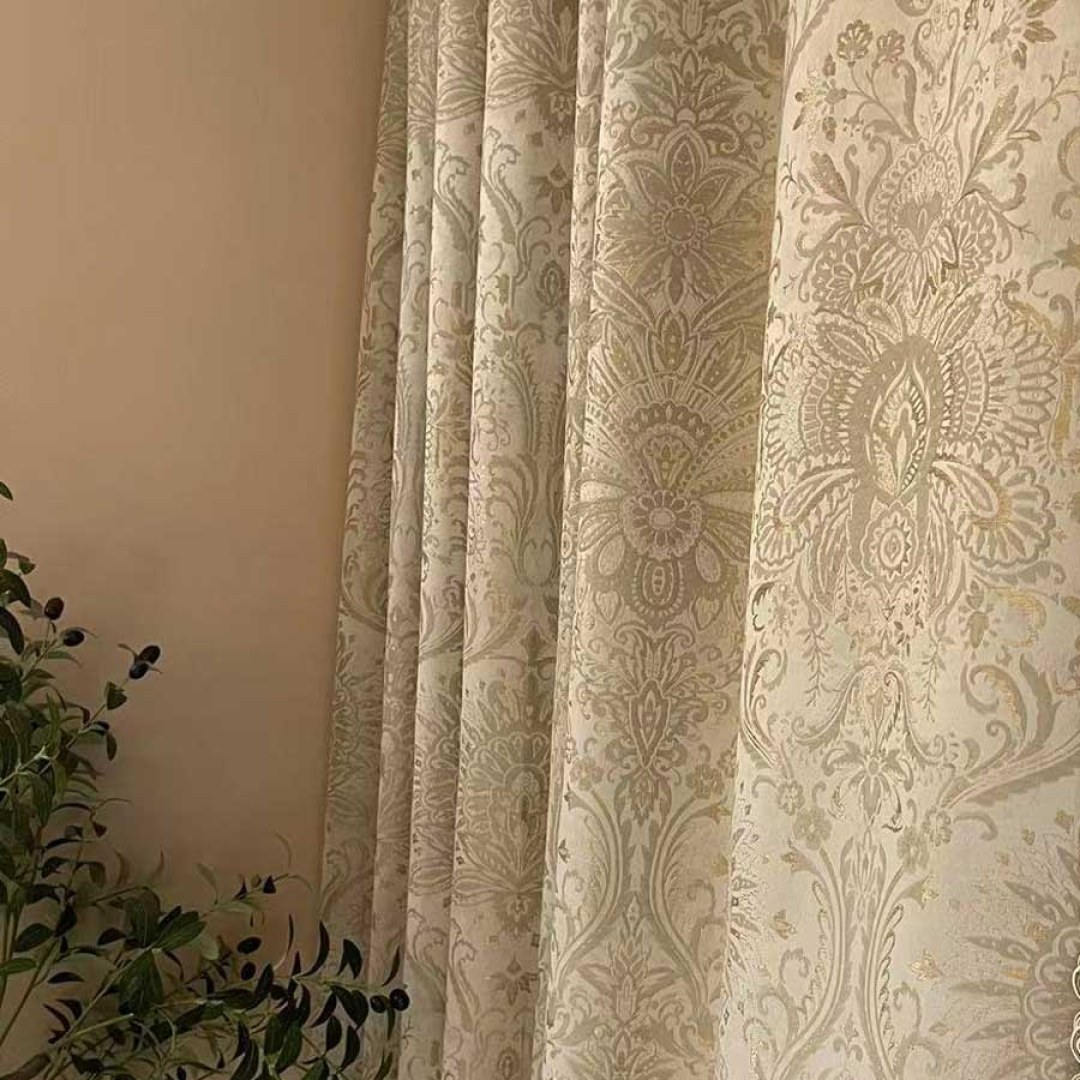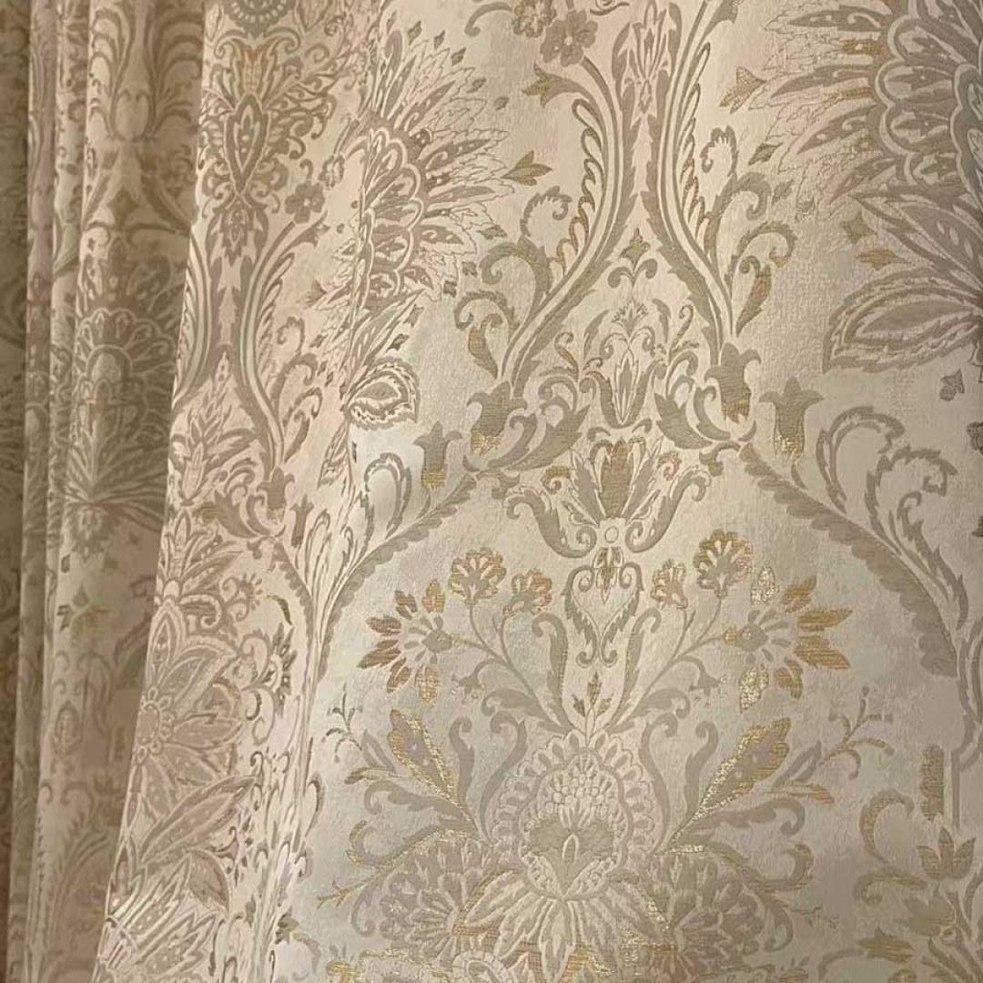Adoptez l'intemporel motif Damas avec ces luxueux rideaux jacquard crème et or à motifs floraux dans votre décoration.