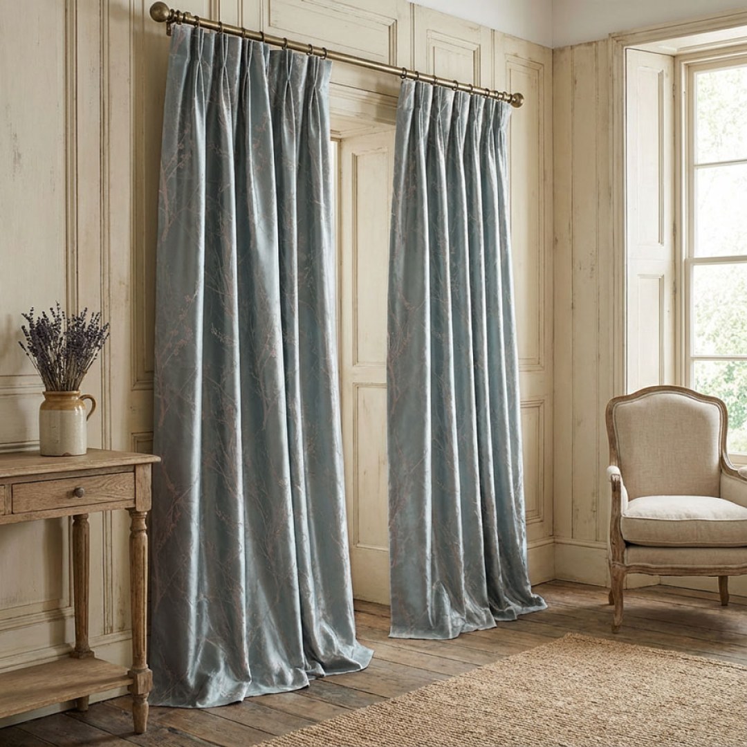 Conçues à la perfection, les rideaux Blossom Branches rayonnent d'une élégance raffinée. Présentant des motifs de branches complexes délicatement ornés de motifs floraux abstraits, ce rideau rehausse sans effort votre décor avec son charme subtil et ses luxueuses nuances de bleu canard. Nos rideaux floraux sur mesure sont méticuleusement confectionnés pour répondre à vos préférences spécifiques. Ils sont disponibles dans une variété de styles de plis pour s'adapter à vos goûts, notamment le galon plissé, l’œillet, le plis pincé, le plis tailleur, le plis boîte inversé, le passe-tringle à patte, le passe-tringle à boucle, la poche à tringle et le rideau à vague. Découvrez comment les rideaux abstraits peuvent moderniser n'importe quelle pièce.