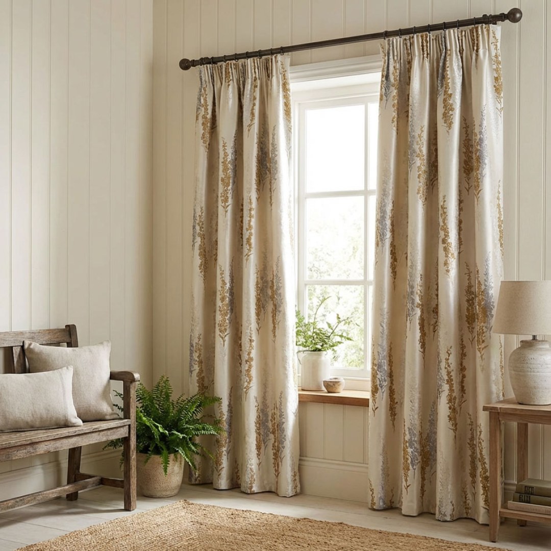 Ces luxueux rideaux jacquard beige crème à motifs floraux capturent l'apparence raffinée et élégante des fleurs de lavande. Le matériau soyeux et la couleur neutre s'harmoniseront avec n'importe quelle pièce de votre choix. Nos rideaux floraux sur mesure sont méticuleusement confectionnés pour répondre à vos préférences spécifiques. Ils sont disponibles dans une variété de styles de plis pour s'adapter à vos goûts, notamment le galon plissé, l'œillet, le plis couture, le plis tailleur, le plis creux inversé, le patin, le patin arrière, la poche à tringle et le rideau à vague. Découvrez comment les rideaux floraux peuvent moderniser n'importe quelle pièce.