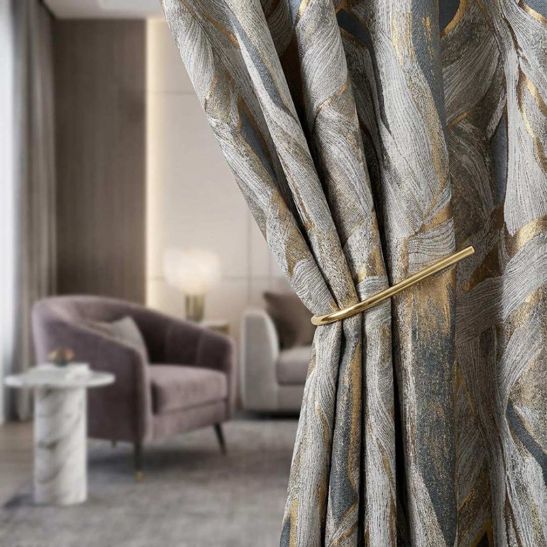 Ce tissu exquis incarne le mouvement et l’élégance des formes naturelles avec une touche de sophistication. Il présente des motifs organiques et fluides dans des tons sourds rehaussés de subtils reflets dorés, créant un effet visuel à la fois dynamique et apaisant. Nos rideaux sur mesure sont méticuleusement confectionnés pour répondre à vos préférences spécifiques. Ils sont disponibles dans une variété de styles d’en-tête pour s’adapter à vos goûts, notamment à plis crayon, à œillets, à plis pincés, à plis tailleur, à plis inversés, à patte, à coulisse cachee, à poche à tringle et rideaux à vague. Découvrez comment les rideaux abstraits peuvent moderniser n’importe quelle pièce.