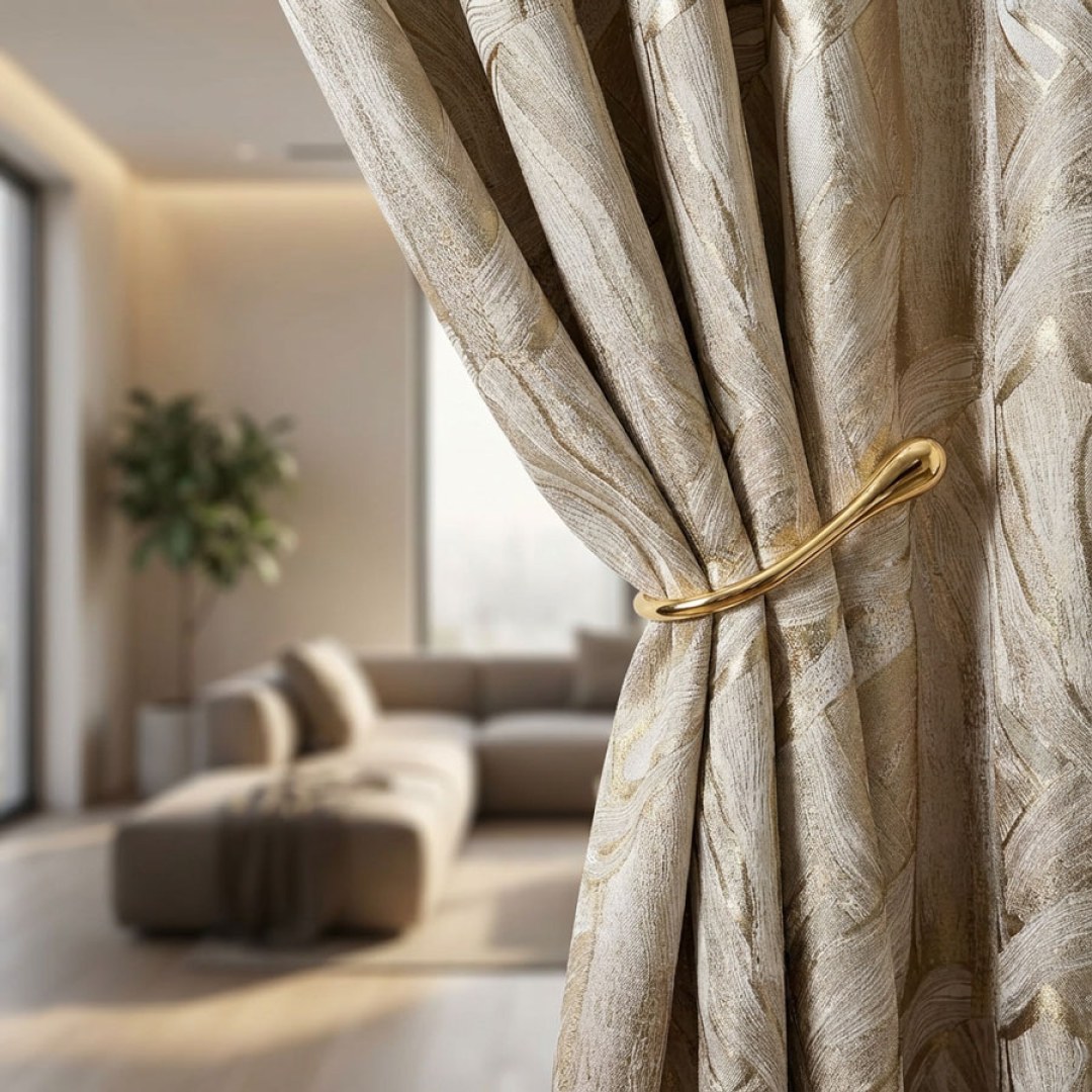 Dreamscape Luxury Jacquard Abstrait Crème et Or Rideaux