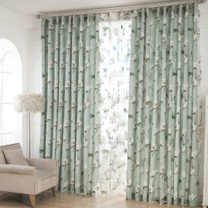 La collection de rideaux Morning Flower offre un délicieux motif floral répétitif et est disponible en vert menthe ou en crème boutique. Le tissu durable et le motif floral rehaussent parfaitement votre décoration de fenêtre.