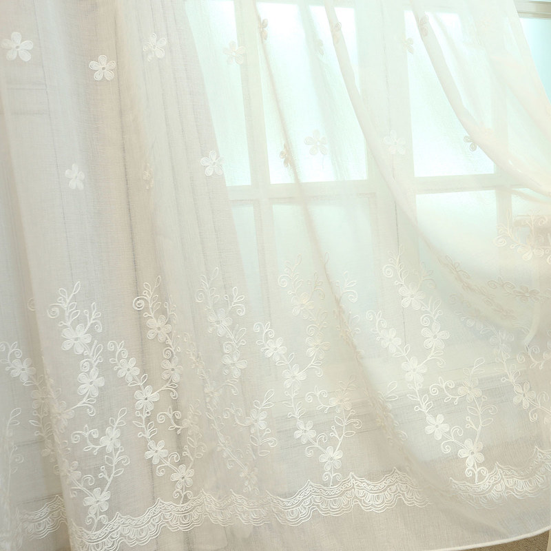 Avec de belles fleurs blanches et une ambiance de rêve, ces charmants rideaux en voile ne manqueront pas de vous séduire. Nos rideaux en voile sur mesure sont adaptés à vos besoins précis en matière de fenêtres et disponibles dans un choix de styles de tête : œillets, patte de fixation, plissé simple, plissé double, plissé personnalisé, plissé à pinces, plissé inversé, poche à tringle et rideaux à vagues. Découvrez comment les rideaux en voile à motifs floraux peuvent moderniser n'importe quelle pièce.