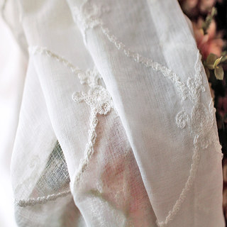 Ce voilage exquis présente un motif arabe complexe avec de délicates courbes blanches brodées et des motifs floraux. Le tissage léger et texturé ajoute une touche douce et élégante, ce qui en fait un choix parfait pour apporter une sensation de grâce et une intimité subtile à n'importe quelle pièce.