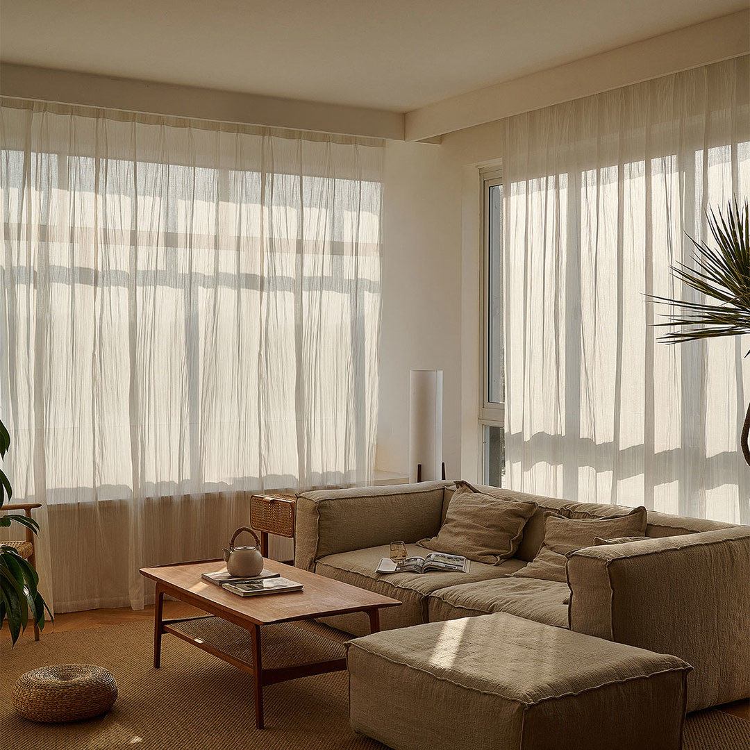 Le rideau en voile froissé ou écrasé est devenu de plus en plus populaire ces dernières années. Ses textures riches et ses magnifiques détails offrent un look raffiné et luxueux. Ces rideaux uniques en coton froissé permettent d’assurer l’intimité sans bloquer toute la lumière, ce qui les rend parfaits pour les portes-fenêtres et les rideaux de portes coulissantes. Nos rideaux sur mesure sont méticuleusement confectionnés pour répondre à vos préférences spécifiques. Ils sont disponibles dans une variété de styles de plis pour s’adapter à vos goûts, notamment le galon plissé, l’œillet, le plis pincé, le plis tailleur, le plis boîte inversé, le patin, le patin arrière, la poche à tringle et le rideau à vague. Découvrez comment les rideaux en voile froissé peuvent moderniser n’importe quelle pièce.